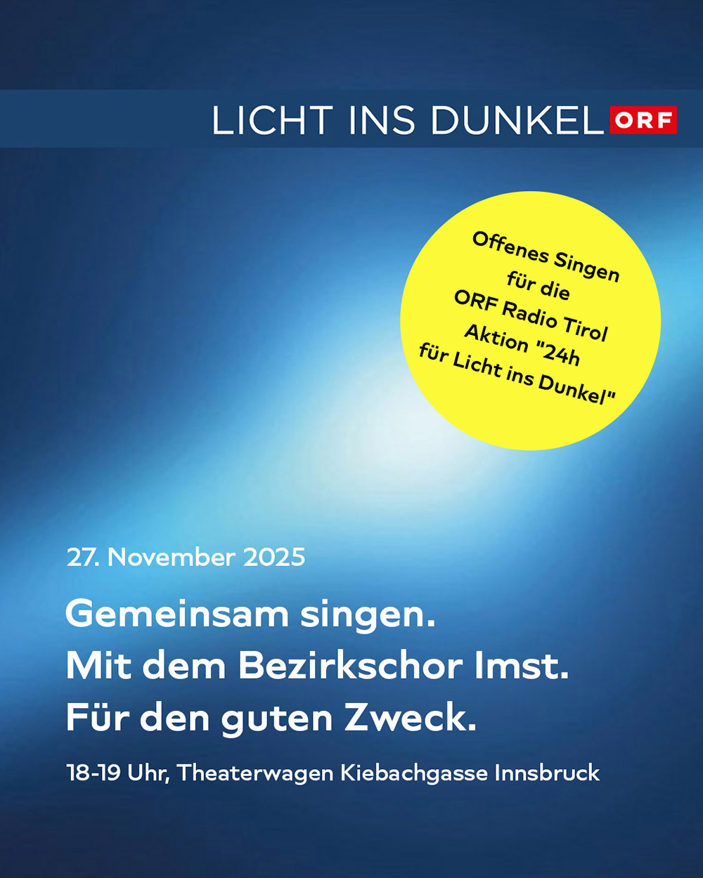 Offenes Benefizsingen für "Licht ins Dunkel" (ORF Tirol) des Chorverband Tirol