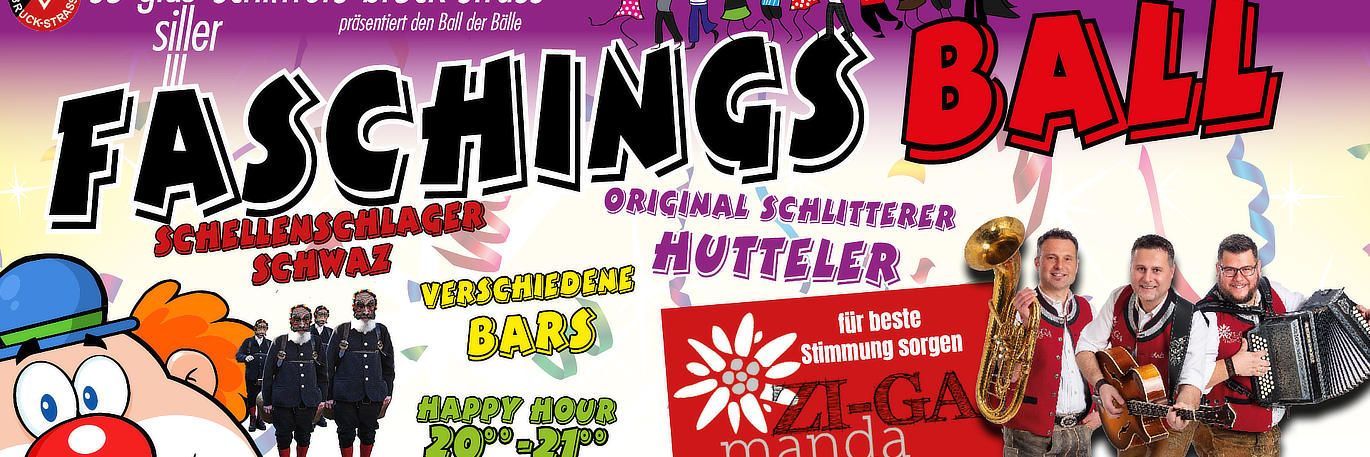 Am 14. Februar 2026 lädt der SV Schlitters-Bruck-Strass zum legendären Faschingsball ins Kulturzentrum Schlitters ein. Für beste Stimmung sorgen die ZI-GA Manda, begleitet von Auftritten der Original Schlitterer Hutteler sowie der Schwazer Schellenschlager. Mehrere Bars im gesamten Saal und eine Auswahl an warmen Snacks – von Schnitzelsemmel bis Pommes – runden den Abend ab.